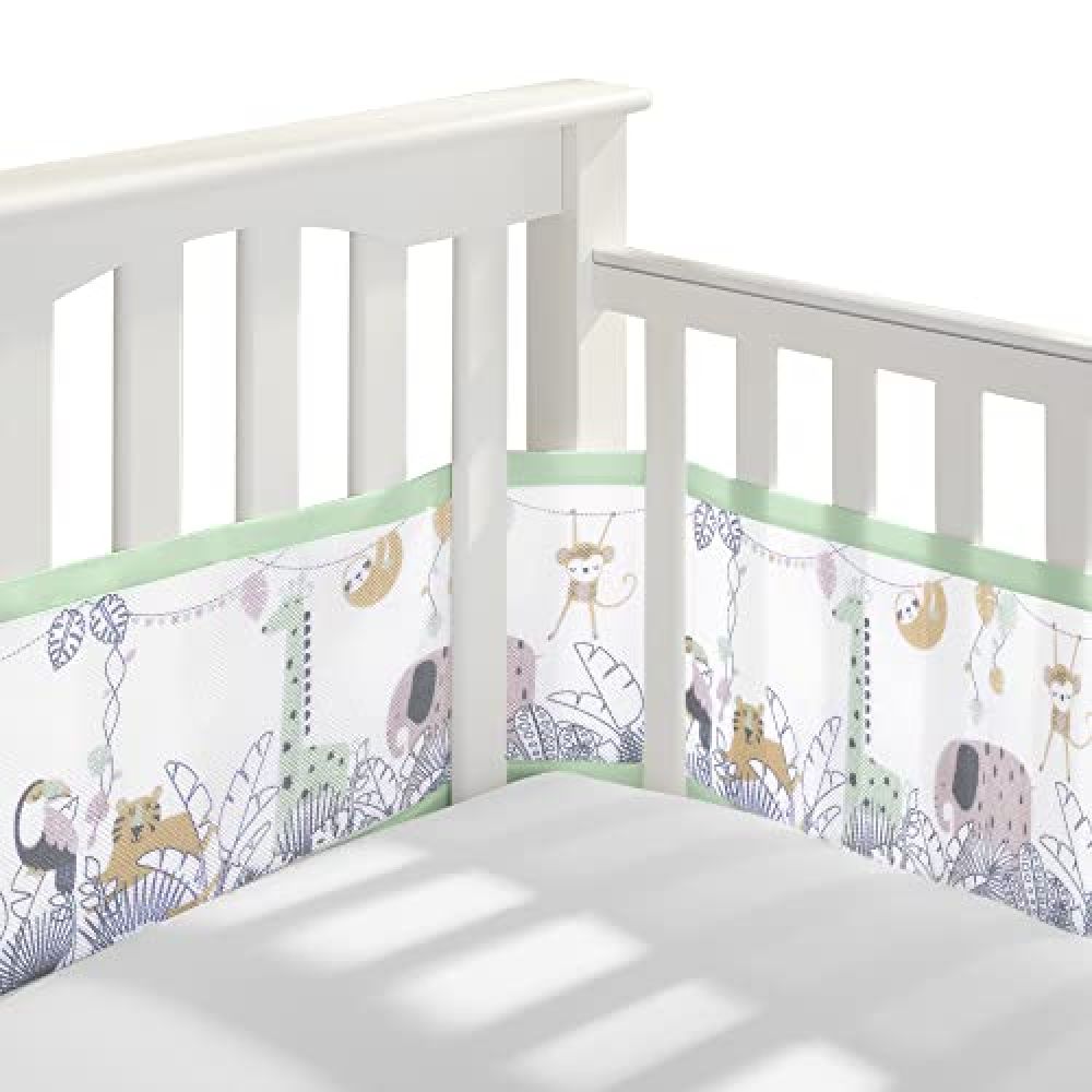Soft mesh liner protects baby from bumps & bruises whilst ensuring air flow. Extra long 4 sided wrap. Adjustable to fit standard cot & cotbeds as well as cots with solid ends.