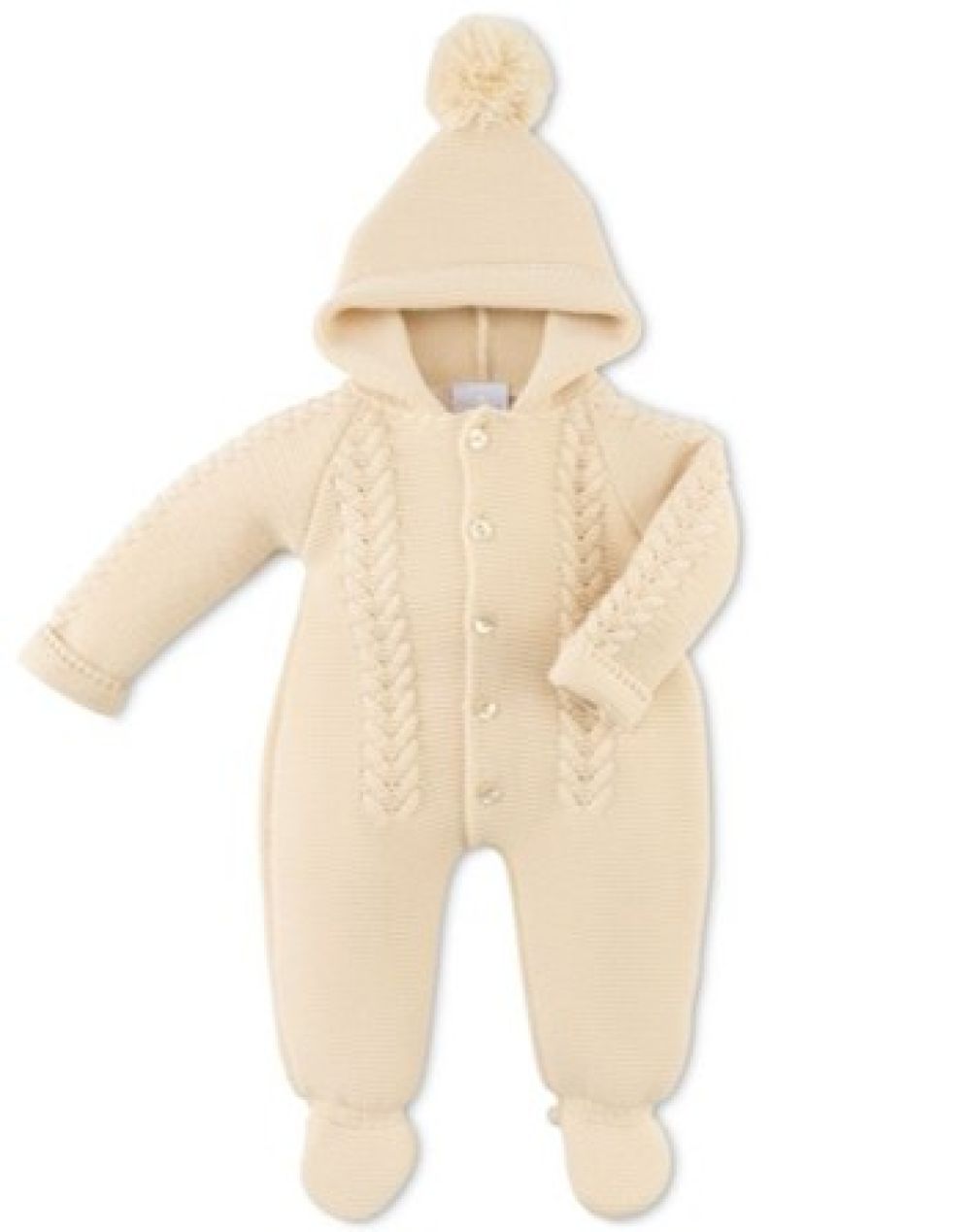 Knitted baby pramsuit avaliable in sizes: NB/ 0-3/ 3-6 Months
