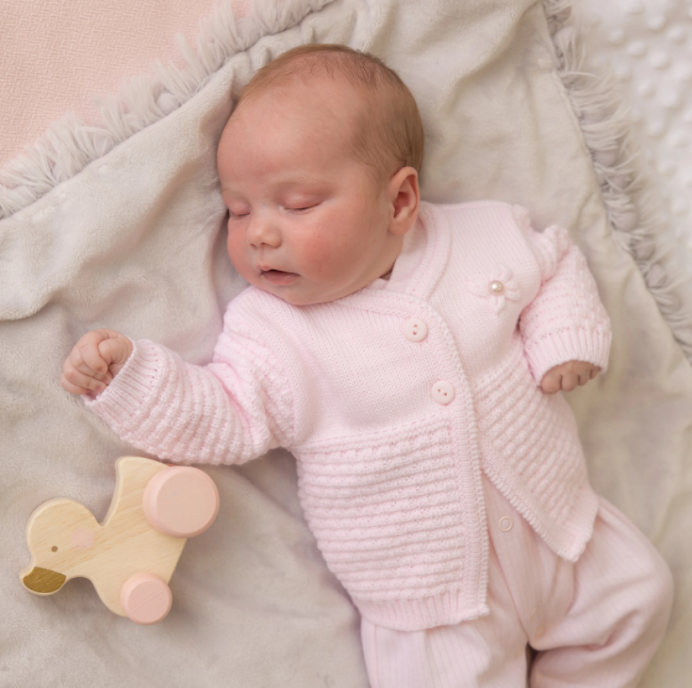 DANDELION Knit Cardigan "Pink Petal" NB, 0-3, 3-6